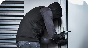 Robo de mercancías, dinero o valores, y daños a anuncios o cristales.